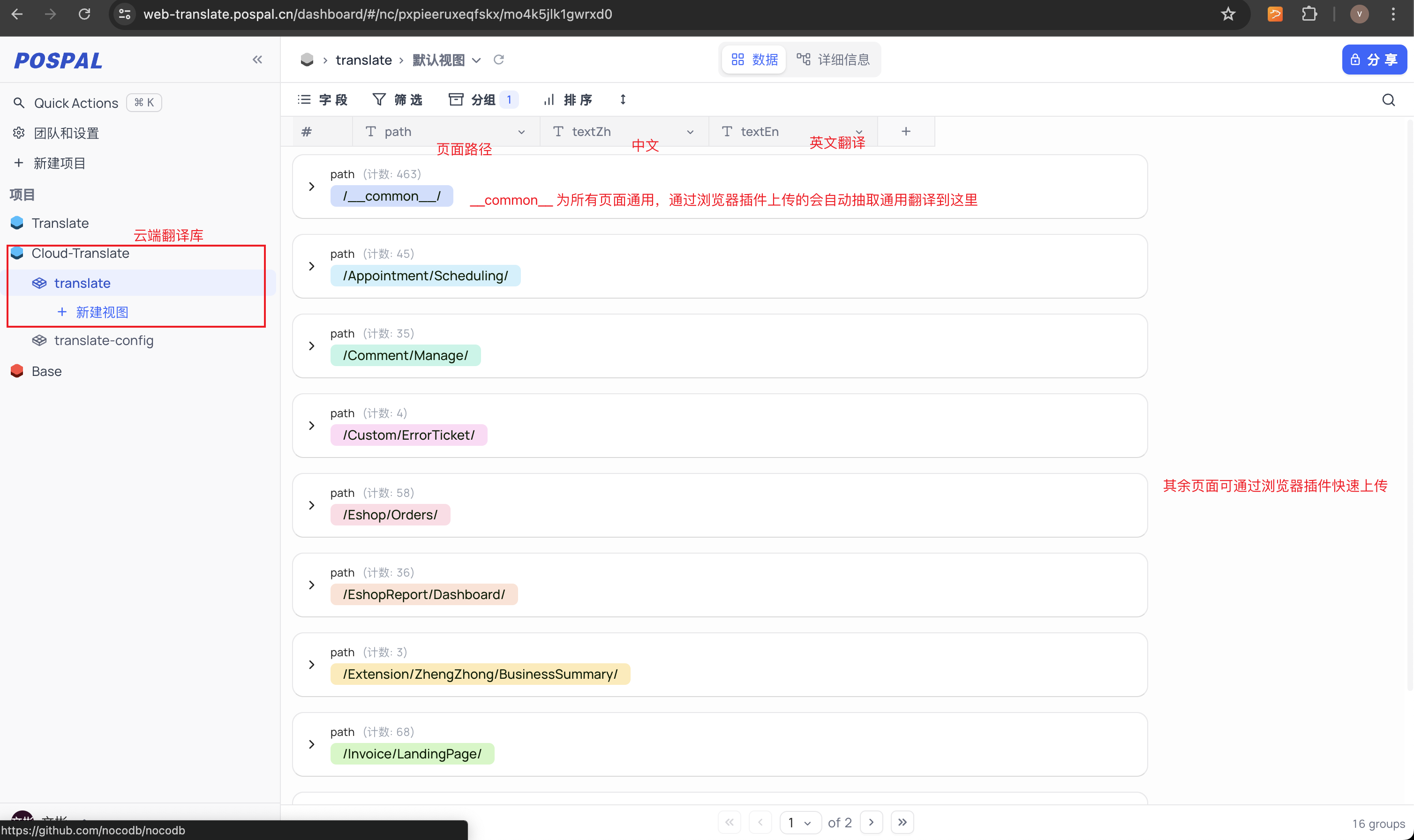 地址:https://web-translate.pospal.cn/dashboard/, 主要用于维护网页的翻译文本,如果需要翻译的内容有在表格内,则不会调用微软 在线 API 进行翻译。如需要账号,请联系 @陈文彬